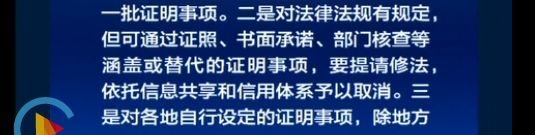可通過法定證照、書面告知承諾、政府部門間核查等涵蓋或替代的證明事項,要提請修法,依托信息共享和信用體系予以取消。