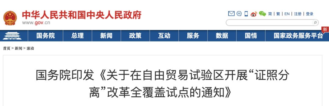 開展“證照分離”改革全覆蓋試點的通知
